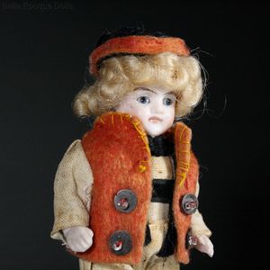 This beautiful carousel is so fabulous with its four bisque head jockeys, each riding a glass-eyes carousel animal : a horse, a pig and two bunnies.